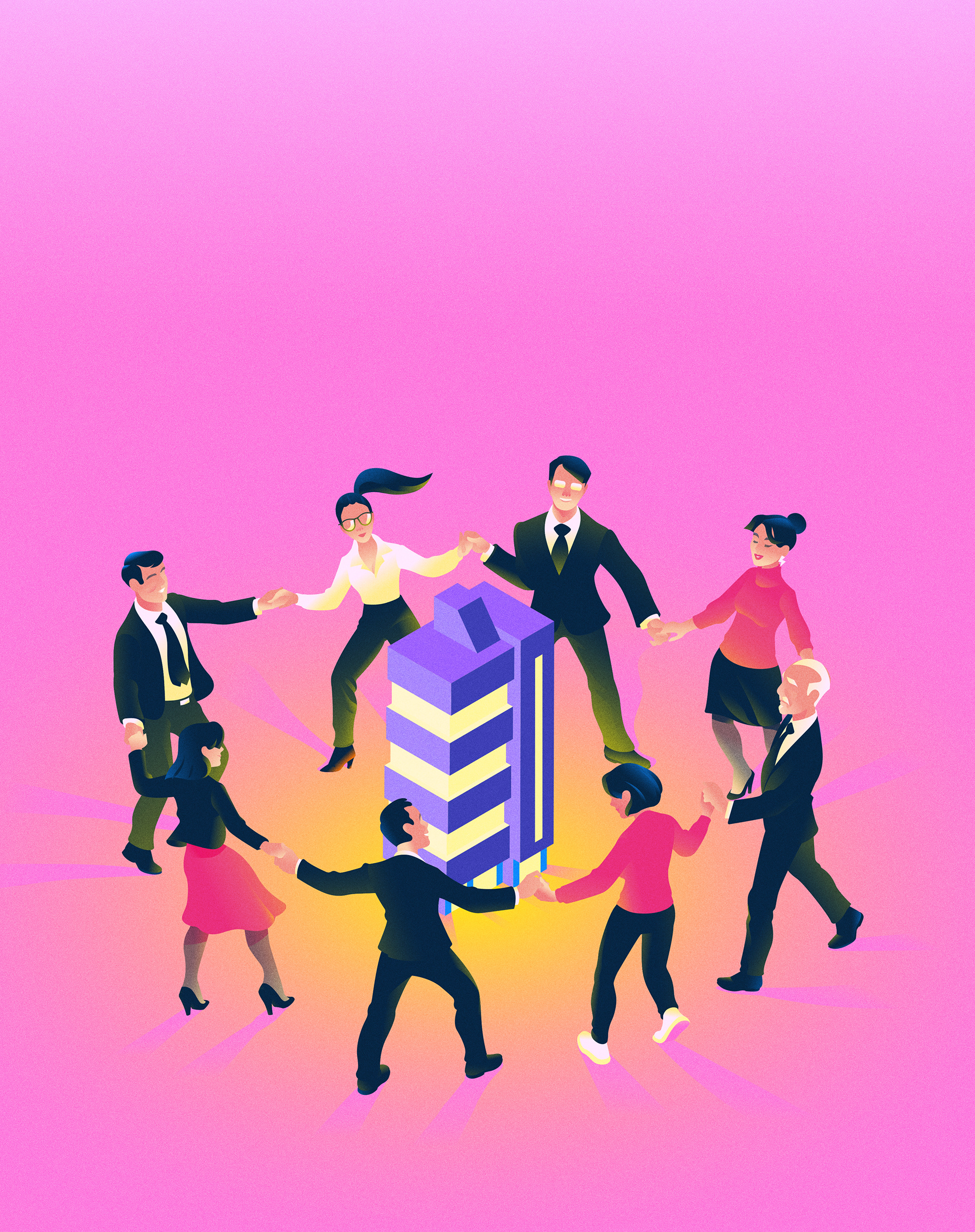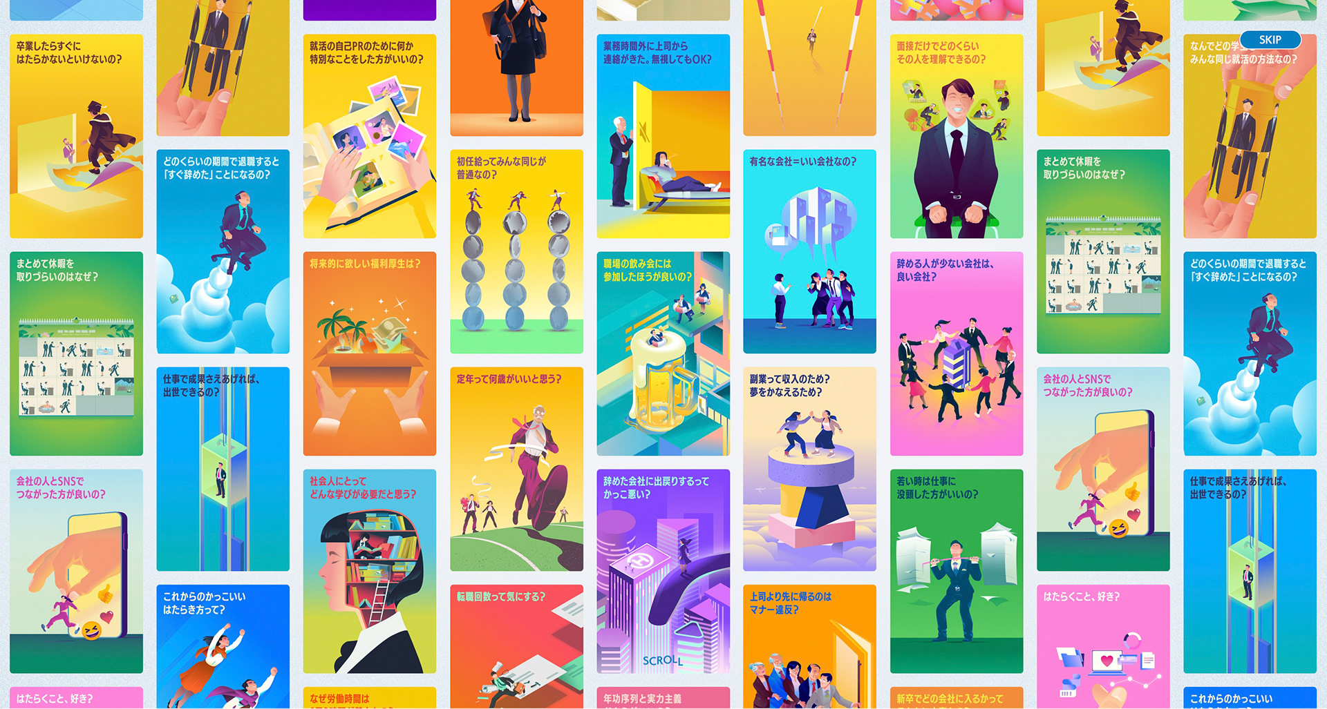 The illustrations were published across social platforms, an interactive web experience, and a public exhibition, all aimed at igniting deeper conversations about how, why, and for whom we work.