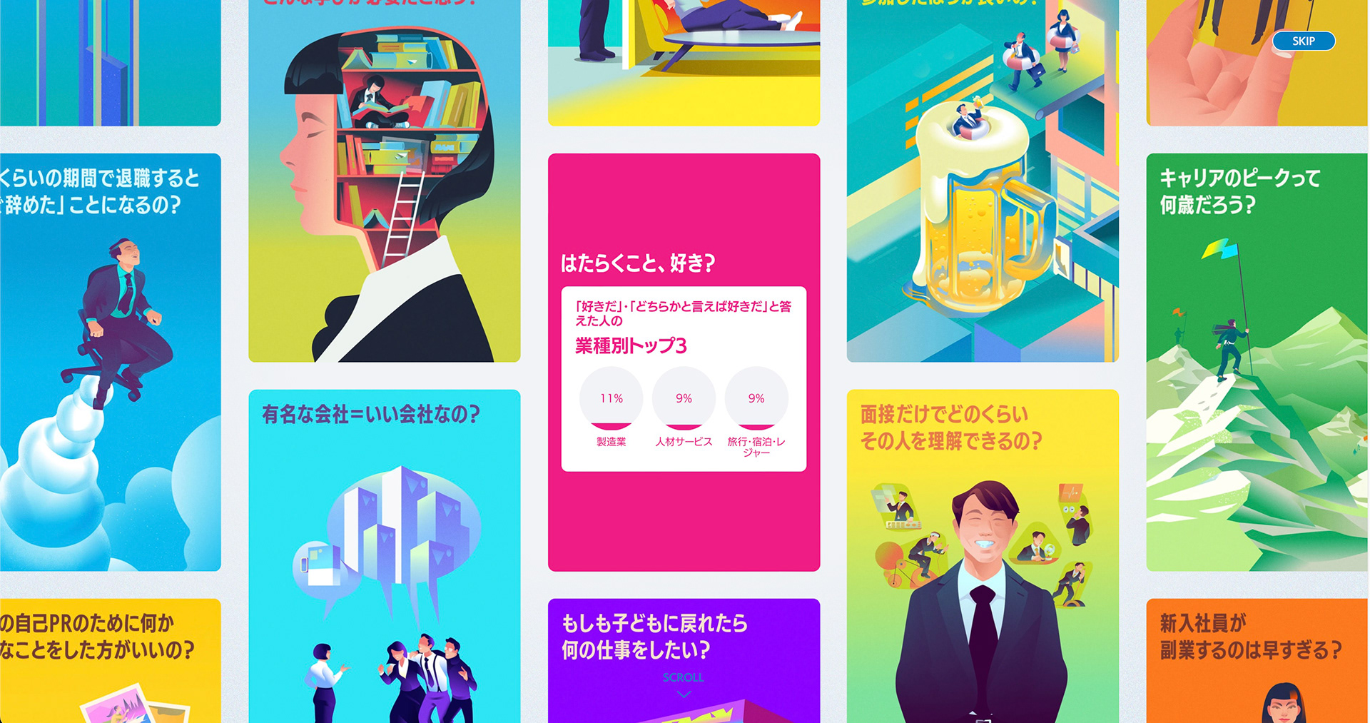 This project tackles the complex realities of modern work culture in Japan through a question-driven format; HATARAQUIZ (the title combining Hataraku = work/ to work with "Quiz") invited the public to reflect on their own work experiences by answering 100 provocative questions, from the practical to the existential.