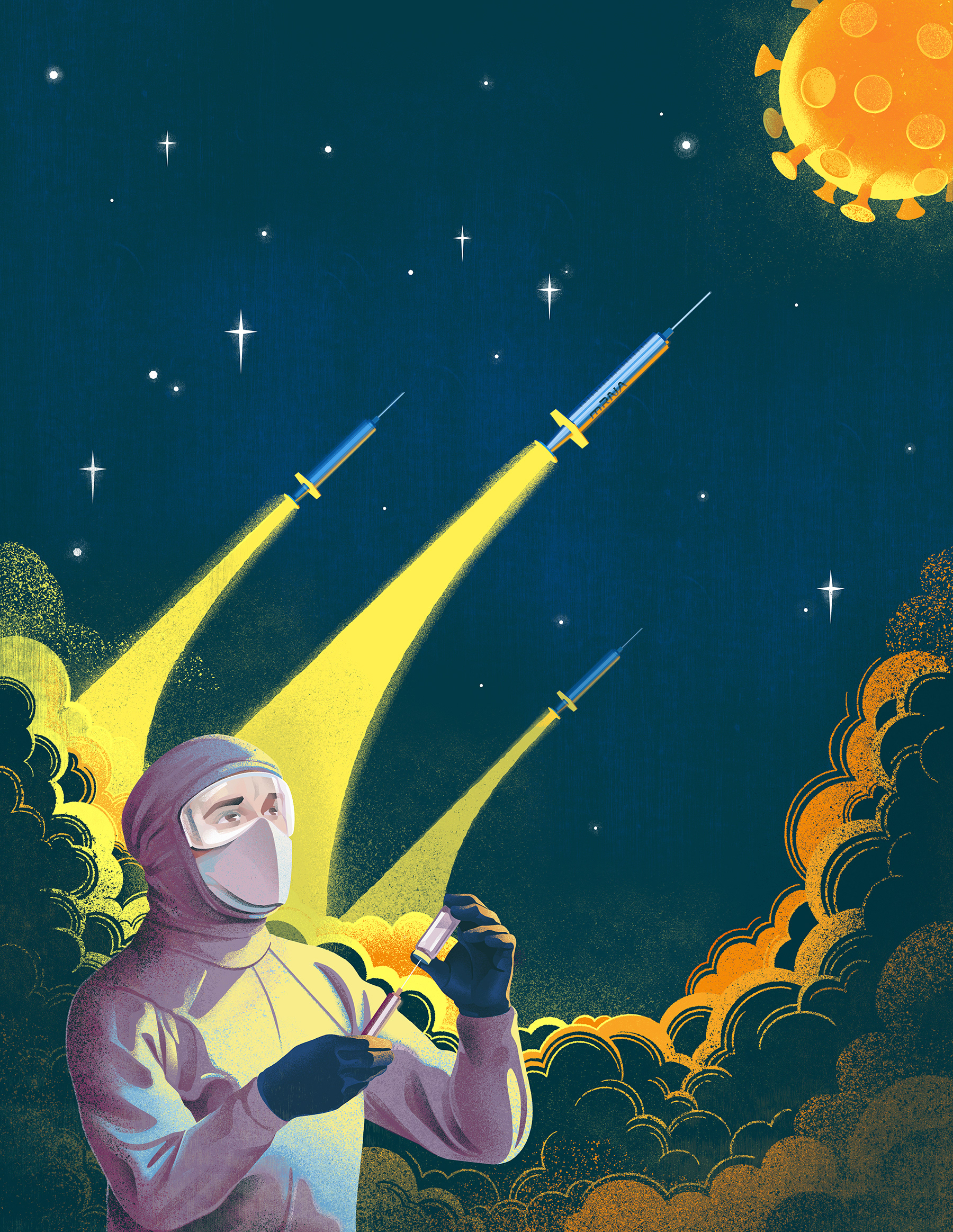 "The Vaccine Race" Editorial illustration/ Cover artwork - Medicinsk vetenskap, 2021