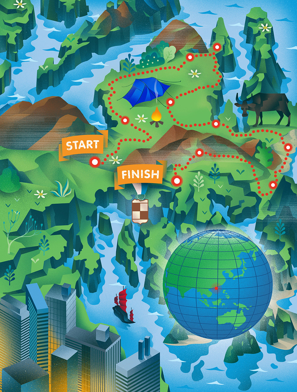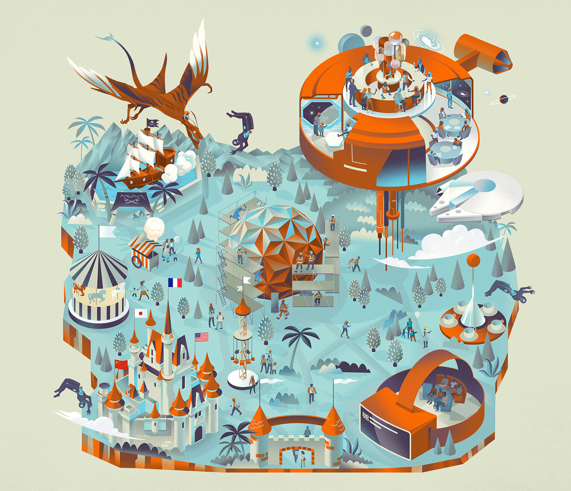 "It's a Big, big world; Theme parks growing in popularity" Editorial illustration - Fast Company, 2019