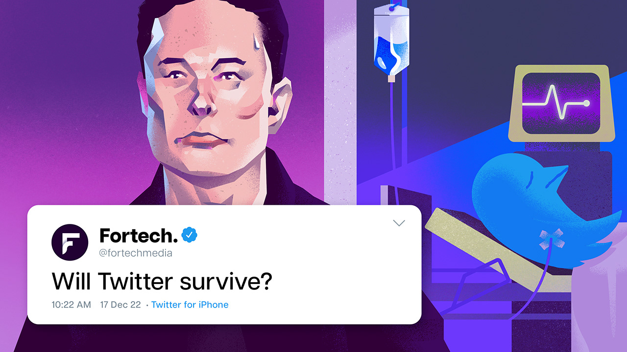 "Will Twitter Survive?" Editorial illustration - Fortech Media, 2023