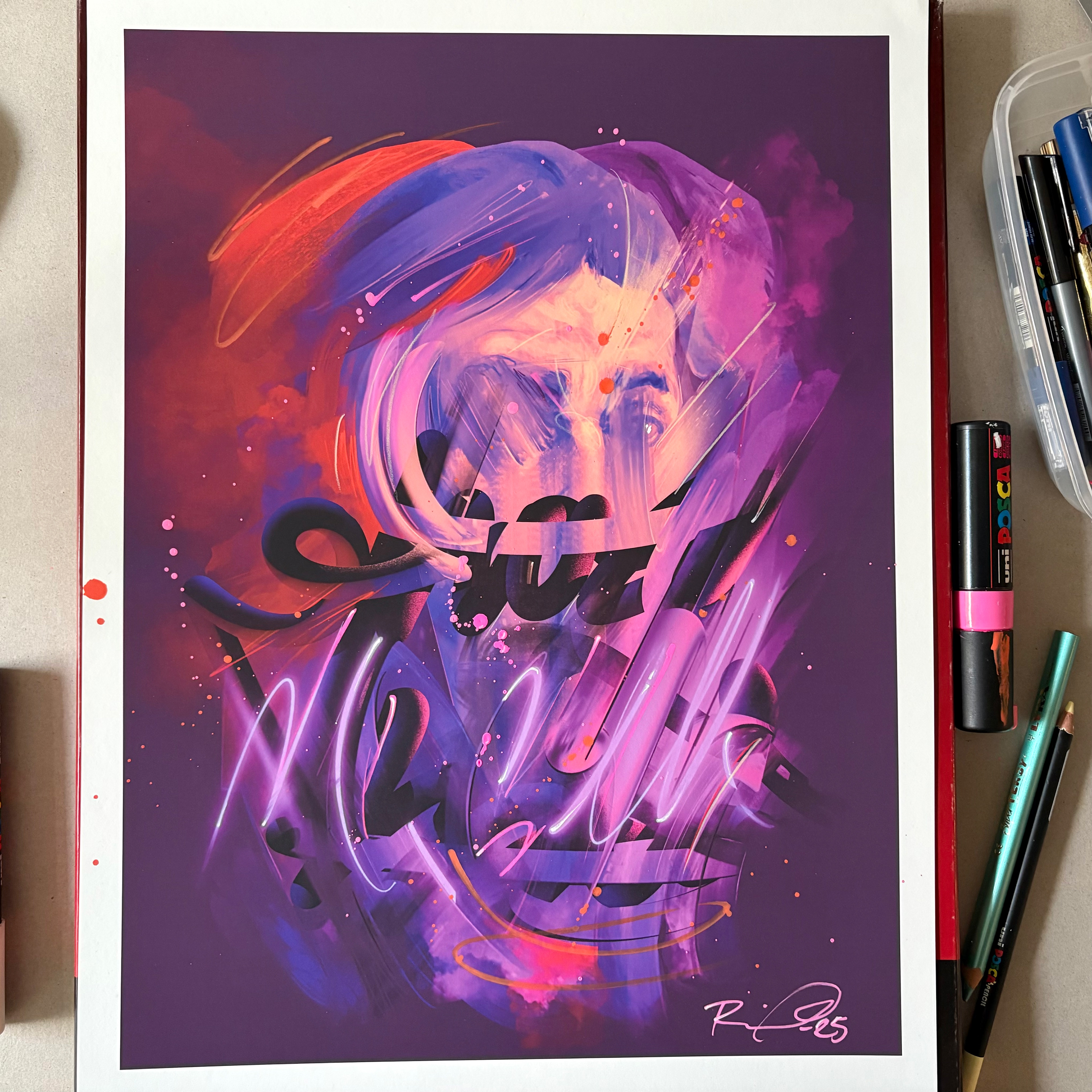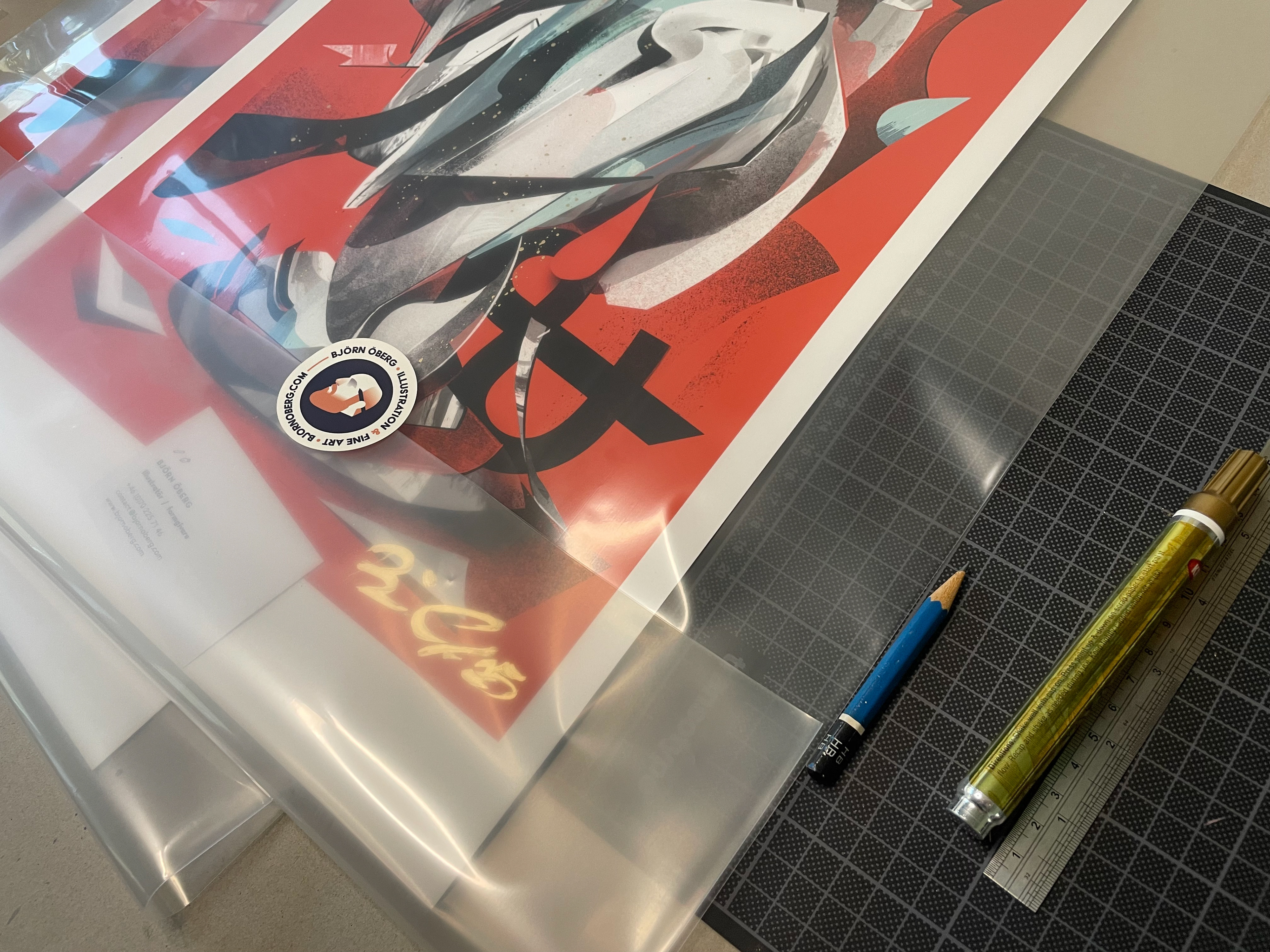 Print edition photographic poster with splashes of the same color/ gold used for the original decor.