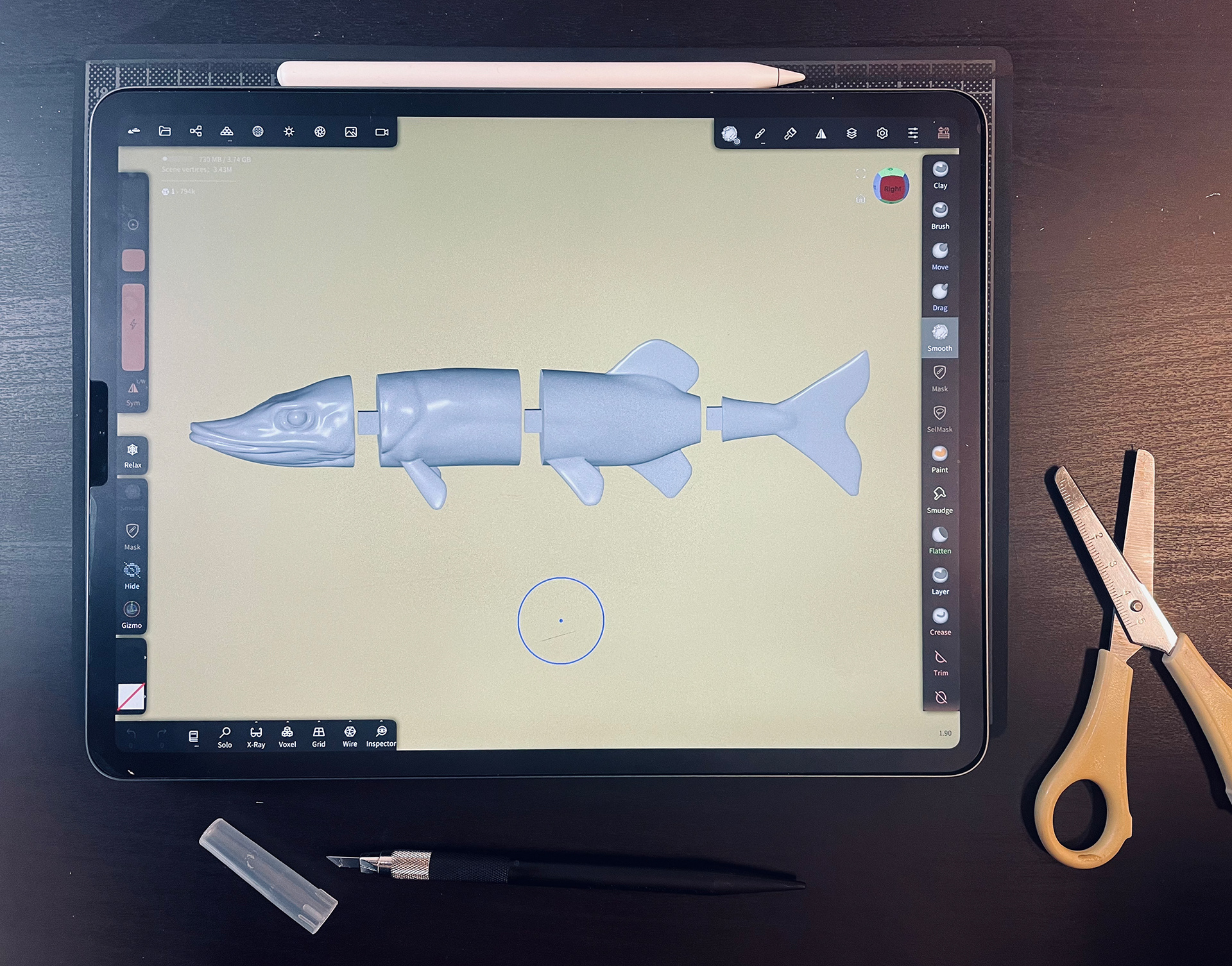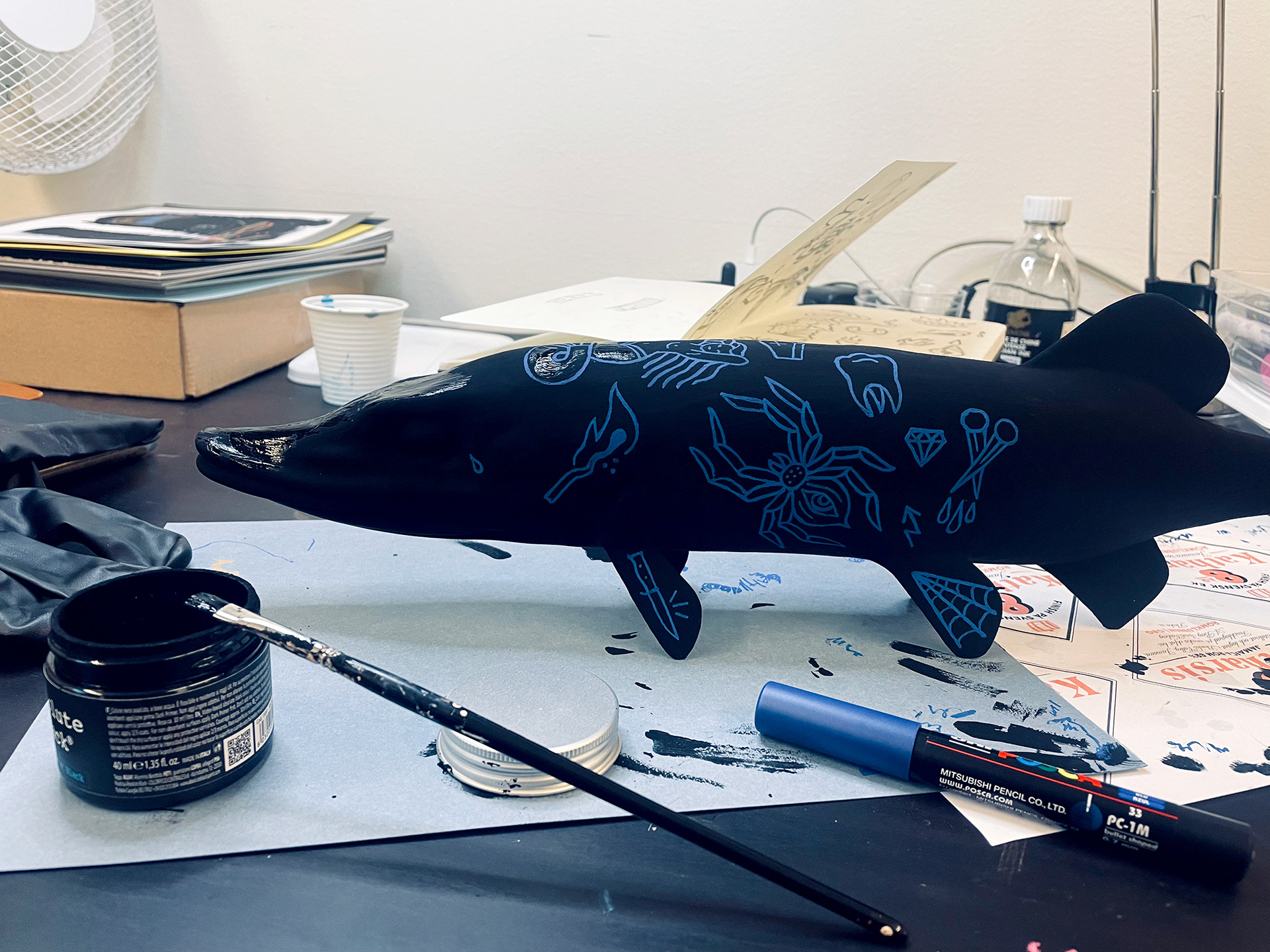 3D printed sculpture with hand painted details and 18 Kt gold leaf - Personal work, 2024