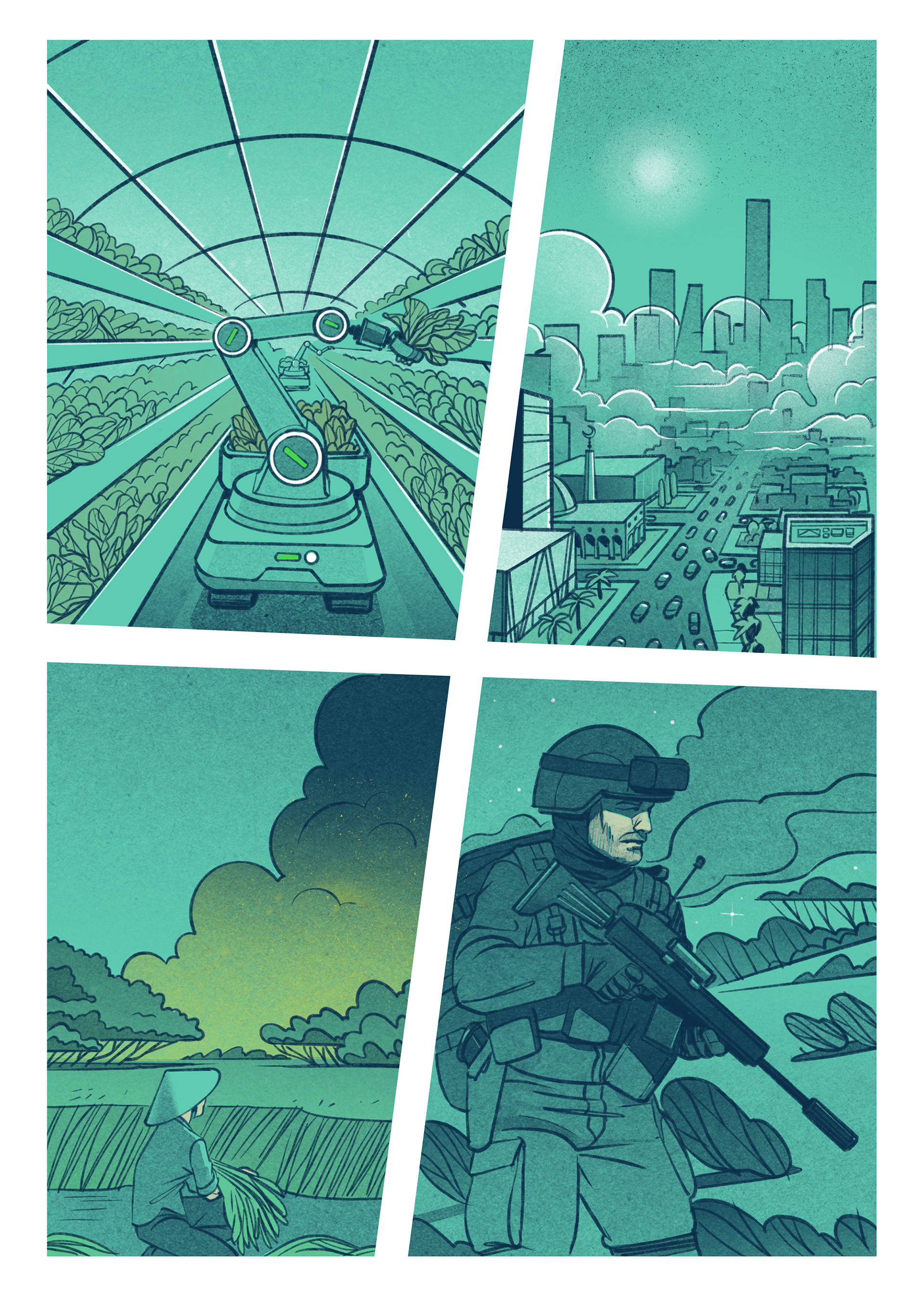 Illustrations created for a series of foresight process reports on raw materials and sustainable supply chains as well as Migration and environment. Commissioned by Deutsche Gesellschaft für Internationale Zusammenarbeit (GIZ), Germany.