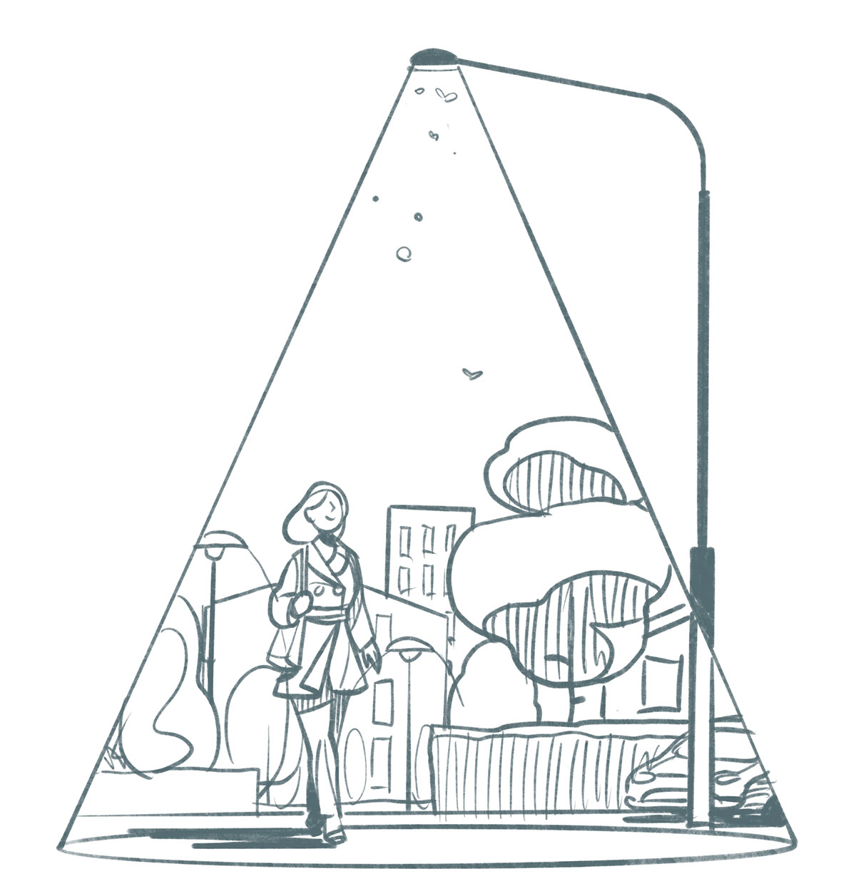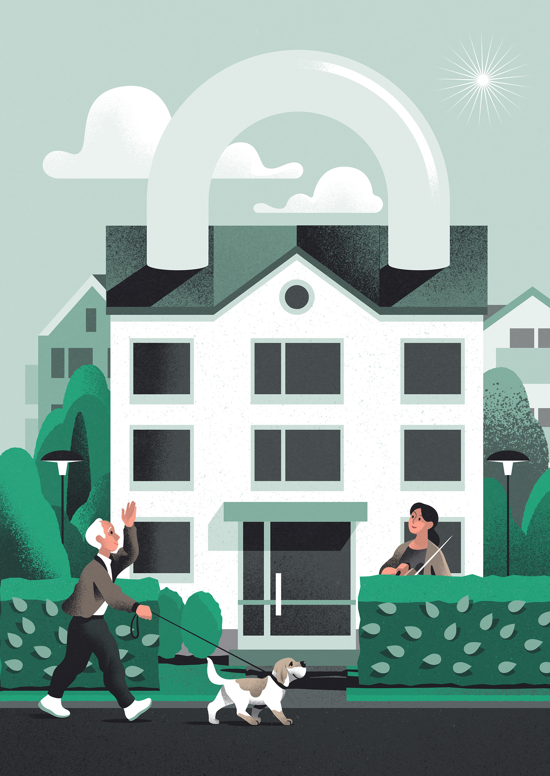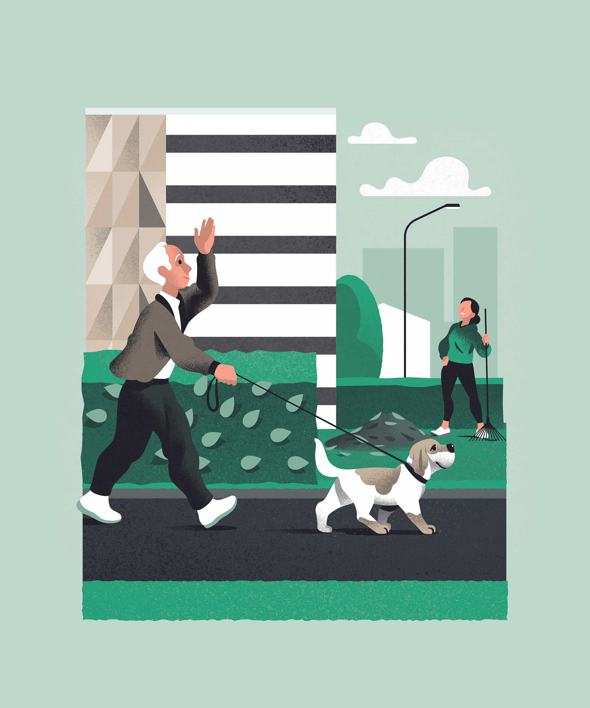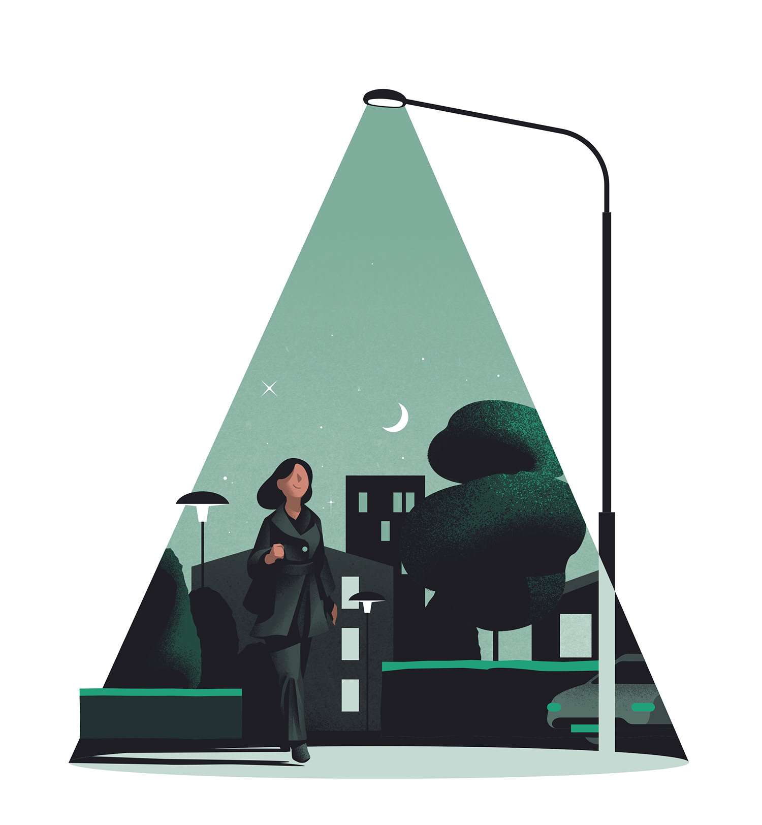 Illustrations for a magazine published by HSB - Sweden’s biggest federation of cooperative housing. The article focuses on neighbourhood safety and a few different measures (such as good lighting) to better ensure it.