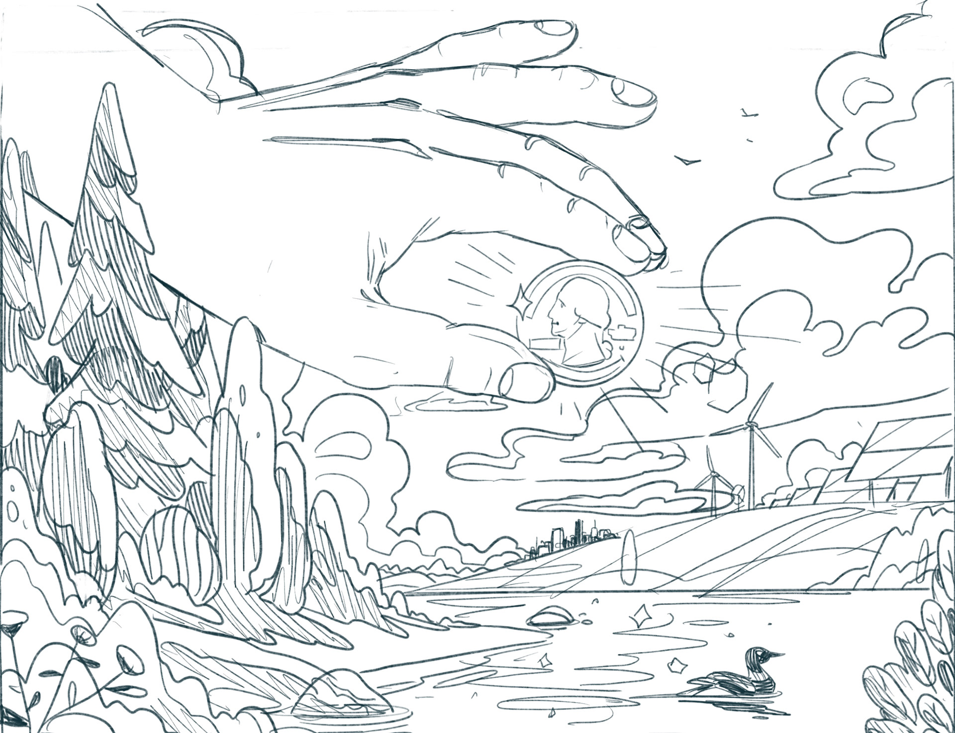 Zero emission investments. Illustration for Sunrise Bank, Minneapolis.
